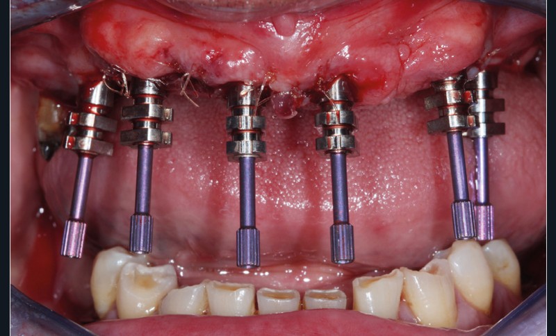 Des implants mandibulaires postérieurs sont également programmés dans la même séance.