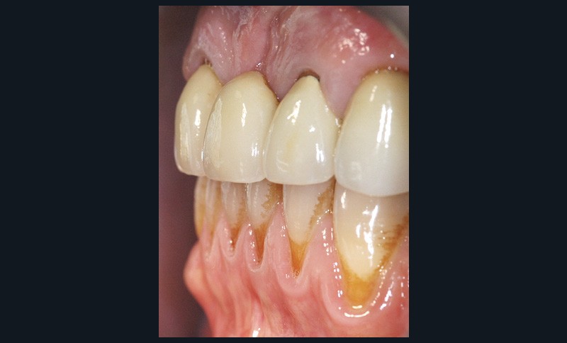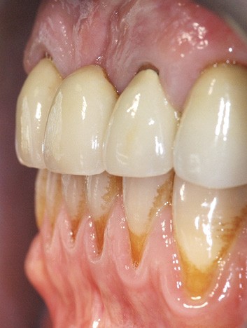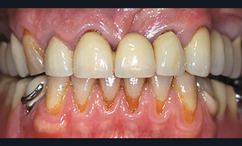 Il débute par l’évaluation des paramètres gingivaux (ligne du sourire [2], biotype parodontal [3], présence ou absence de papilles interdentaires, alignement des collets…). Les paramètres dentaires (origine de l’édentement, état de restauration des dents adjacentes, forme des couronnes dentaires…) compléteront cet examen (fig. 1). L’origine de l’édentement ne doit pas être sous-estimée. Graetz et al. [4] ont démontré que les patients avec des antécédents de maladie parodontale avaient une perte osseuse marginale et des profondeurs de poches plus importantes que les patients avec un parodonte sain.