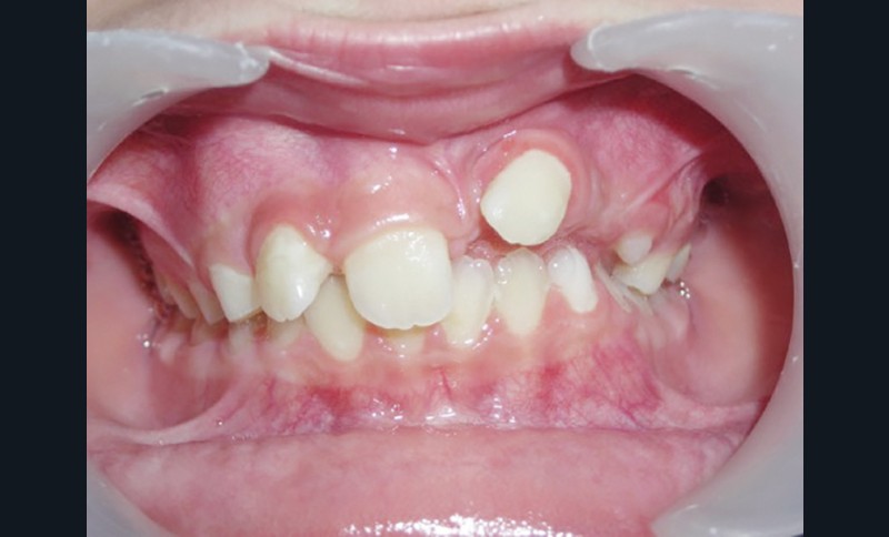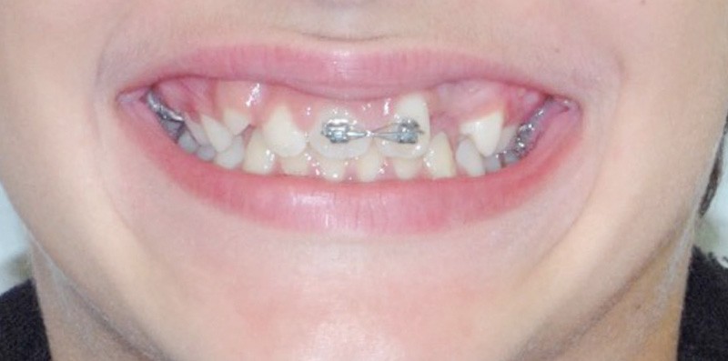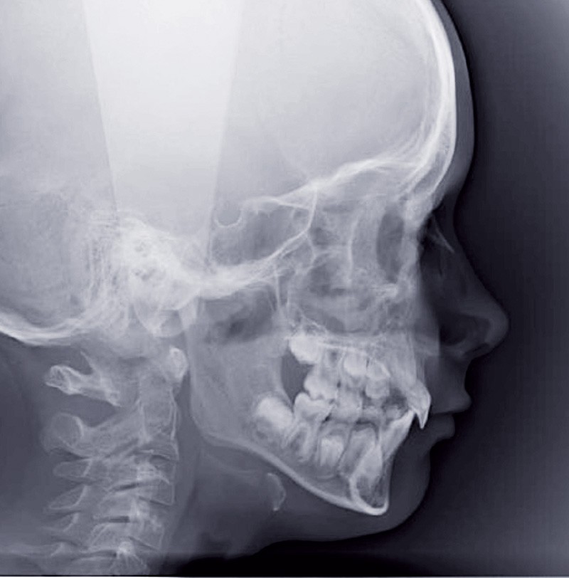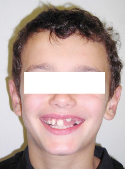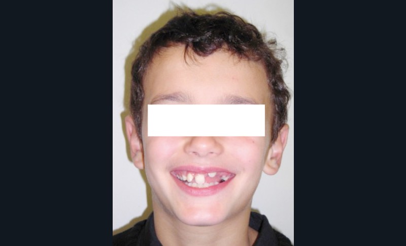 Le jeune Yoan 9 ans est adressé par son chirurgien maxillofacial, suite à l’exérèse d’un kyste bénin du maxillaire, et l’avulsion de 21 et 23 (fig. 1). L’apex de 22 a été soufflé par le kyste. La céphalométrie (fig. 2a et b) et l’examen clinique mettent en évidence une classe II squelettique par rétromandibulie, ainsi qu’une classe II dentaire. Le patient, est particulièrement perturbé par l’intervention qu’il vient de subir, et la coopération s’annonce difficile.