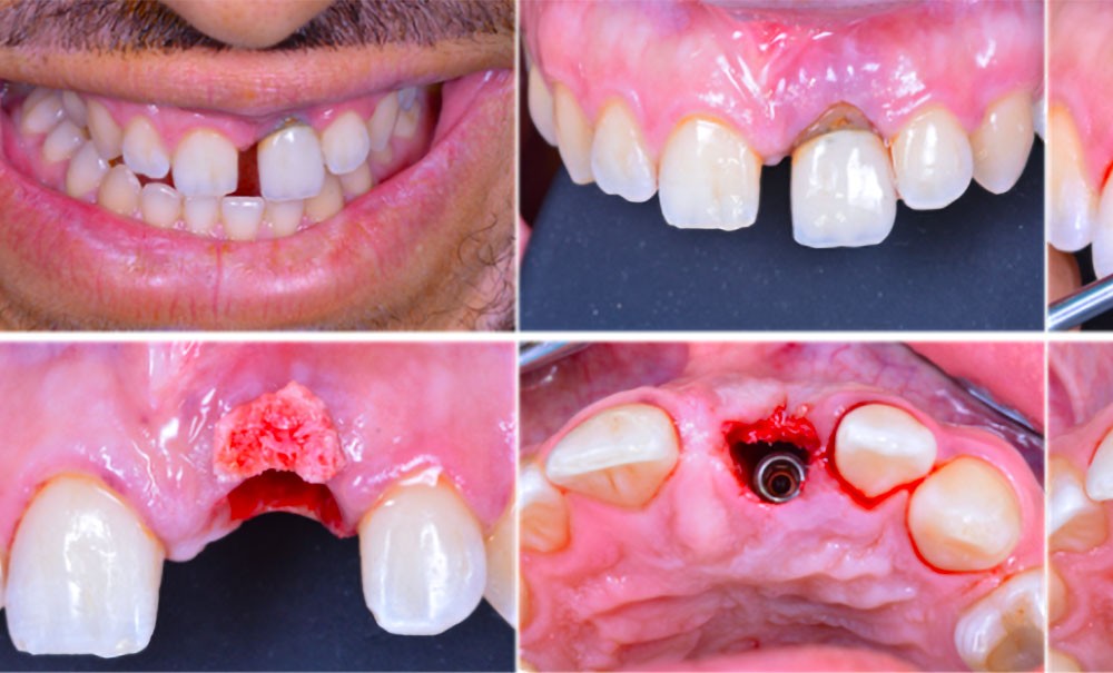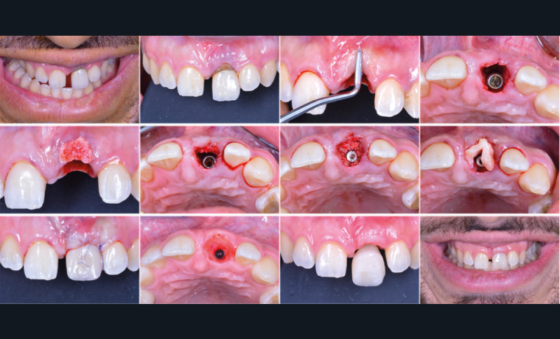 Le Dr Thollot rejoint les propos du Dr Zarrine : il faut exploiter au maximum les situations d’extraction- implantation immédiate. Il encourage également l’utilisation de la triple greffe tubérositaire composée d’os cortical, spongieux et de tissu conjonctif et de la technique de l’« Immediate Dento-Alveolar Restoration (IDR) » qui étend les indications de l’extraction-implantation immédiate dans des alvéoles compromises [2]. Cette technique permettrait de diminuer le temps, le coût et l’invasivité du traitement tout en assurant une prédictibilité esthétique excellente (fig. 1).