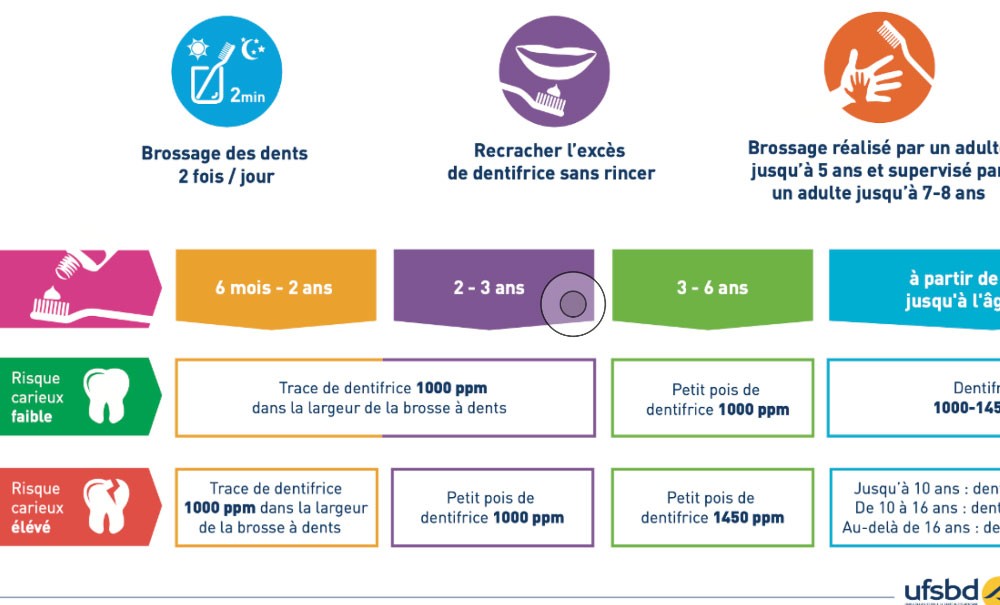 L’efficacité cario-préventive est majorée lors de la réalisation de deux brossages par jour au lieu d’un. Chez l’enfant, un brossage surveillé augmente l’efficacité.
