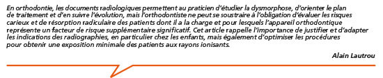 Traiter la problématique de l’imagerie odontologique pédiatrique revient à se questionner sur le respect de deux grands principes de radioprotection des patients en odontologie, que sont la justification des examens radiographiques d’une part, et leur optimisation d’autre part. Si ces principes sont également valables chez l’adulte, ils présentent une importance accrue chez l’enfant, ce dernier étant plus vulnérable vis-à-vis des rayonnements ionisants. L’examen d’imagerie médicale en odontologie pédiatrique constitue, comme chez l’adulte, un examen dit complémentaire. La décision de réaliser ou non cet acte doit se faire en fonction du contexte de la consultation, des données de l’interrogatoire et de l’anamnèse, et des informations délivrées par l’examen clinique préalable. Une radiographie ne doit jamais être effectuée sans avoir évalué l’ensemble de ces paramètres. Dans de nombreux cas, une information diagnostique additionnelle essentielle est apportée. Néanmoins, la prévention des risques associés aux rayonnements ionisants ne doit pas être négligée, notamment chez les plus jeunes. Avant chaque radiographie, une évaluation individuelle du rapport bénéfice/risque doit systématiquement être réalisée. L’examen ne sera alors effectué que si le résultat est susceptible d’améliorer ou de modifier la prise en charge de l’enfant ou de l’adolescent. Après avoir présenté les risques biologiques inhérents au radiodiagnostic pédiatrique et les moyens de les réduire, nous détaillerons les indications de l’imagerie conventionnelle, ainsi que les apports de l’imagerie sectionnelle en odontologie pédiatrique.