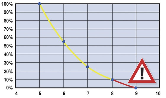 La figure 1a illustre certaines de ces mesures réalisées cliniquement [4]. Entre 2 dents, quand une distance de 5 mm ou moins est observée entre les sommets de la papille et de la crête osseuse, la papille est présente dans 100 % des cas. Quand cette distance est de 6 mm la papille est présente dans 55 % des cas. Elle est présente dans 25 % des cas quand la distance est de 7 mm et dans 10 % des cas quand la distance est de 8 mm. En extrapolant mathématiquement la courbe ainsi constituée, on peut affirmer que la papille devrait complètement disparaître quand cette distance est supérieure à 9 mm [5].