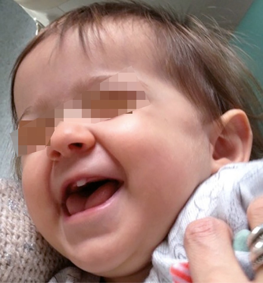 La jeune patiente et ses parents sont orientés vers une consultation d’odontogénétique dans le service de génétique du CHU de Toulouse avec un médecin généticien et une pédodontiste. À la question du déroulé de l’accouchement, la mère décrit des difficultés ayant nécessité la réalisation d’une césarienne 48 heures après le début du travail. Il est en outre relevé, lors de la consultation, que l’enfant pesait 3,77 kg à la naissance (83e percentile), mesurait 50 cm (55e percentile) et présentait un périmètre crânien de 34 cm (37e percentile). L’étroitesse des choanes a été relevée dès la naissance, ainsi qu’une difficulté à la prise alimentaire par tétée.