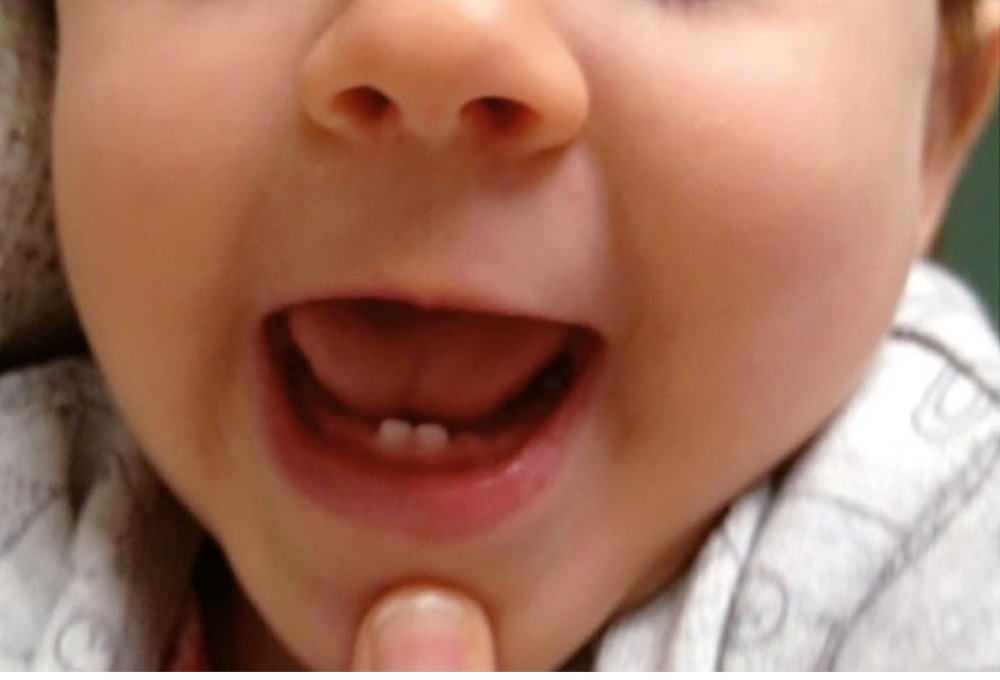 Une enfant et sa mère se présentent en consultation sur recommandation du pédiatre après l’apparition, à l’âge de 14 mois, d’une dent unique et centrée au maxillaire. L’examen clinique et la prise de radiographies et de photographies se révèlent délicats du fait de la coopération limitée de l’enfant. Ils permettent de mettre en évidence la présence d’une formation dentaire unique et centrée sur la ligne médiane au maxillaire. Deux incisives centrales étaient présentes à la mandibule (fig. 1 et 2).