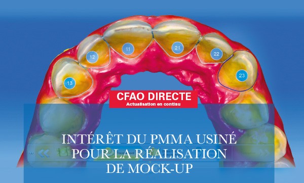 Les progrès considérables réalisés en Conception et Fabrication Assistées par Ordinateur (CFAO) nous permettent aujourd’hui de réaliser ces wax-up et mock-up de façon numérique [4, 5]. Cet article a pour objectif de décrire les étapes de réalisation de mock-up usinés dans des blocs de poly-méthacrylate de méthyle (PMMA) et de mettre en avant les avantages et intérêts d’une telle mise en œuvre comparée à la technique « conventionnelle ».