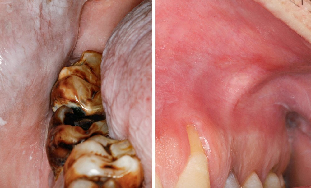 - Le patient n’avait aucune notion d’hygiène bucco-dentaire et n’avait jamais consulté de dentiste auparavant.