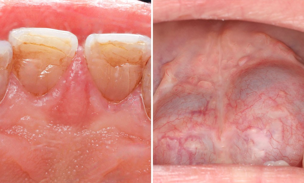 Patiente de 51 ans adressée par son chirurgien-dentiste traitant pour une lésion palatine médiane antérieure d’évolution chronique.