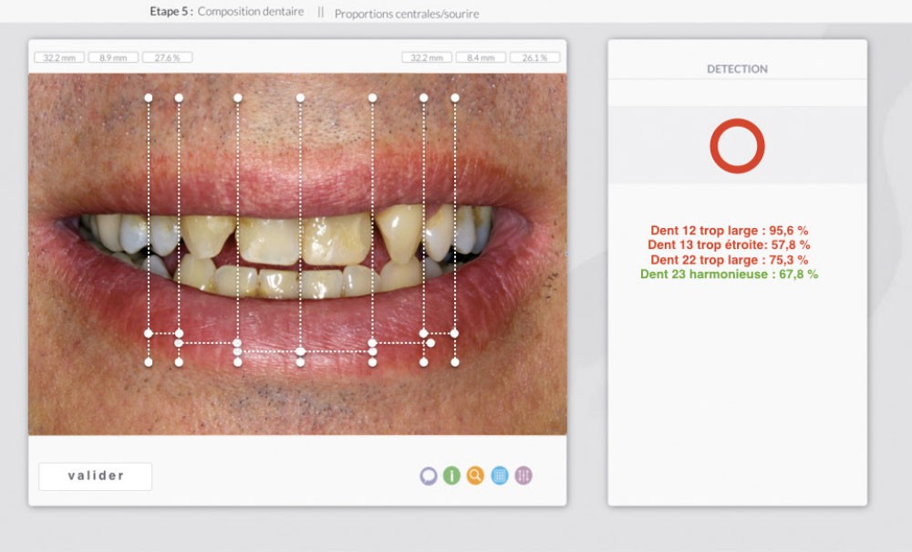 L’analyse esthétique est réalisée au travers de 29 écrans, en commençant par le visage, puis le sourire, une check-list sur l’occlusion, la composition dentaire et la composition gingivale. Nous ne retiendrons que les critères essentiels pour cet article.