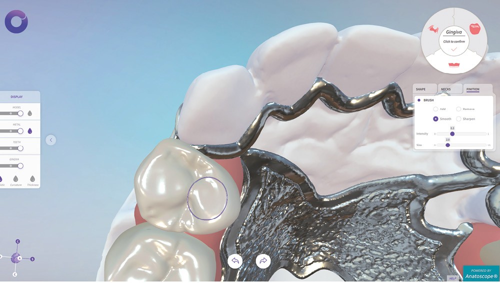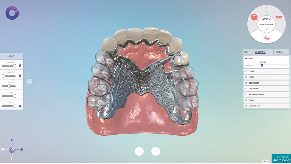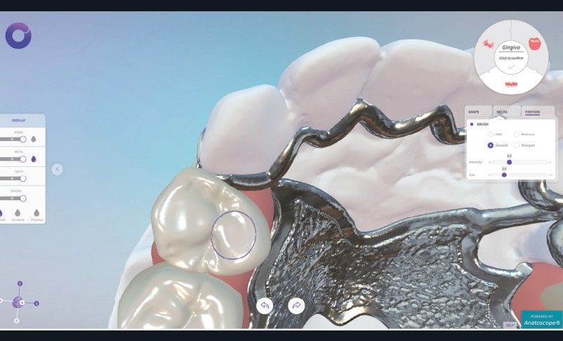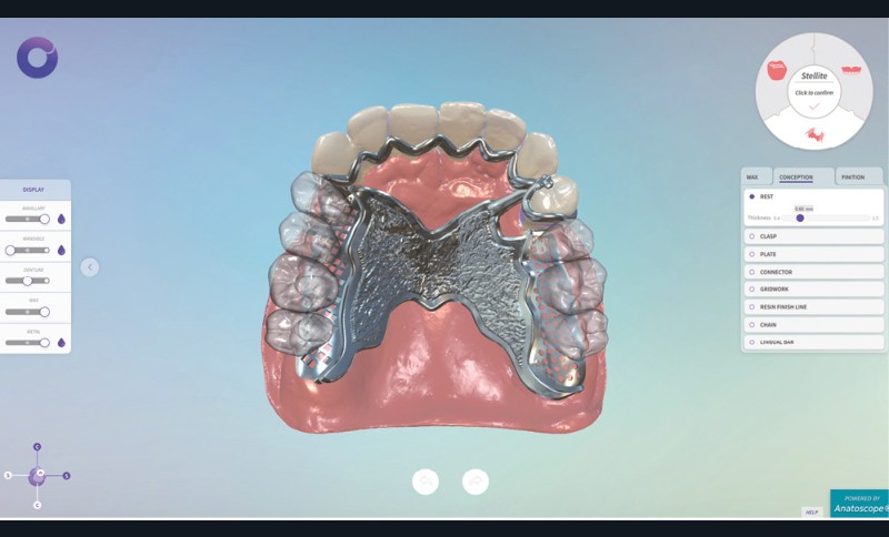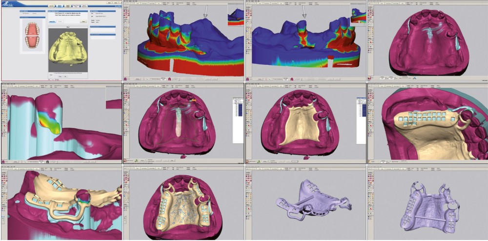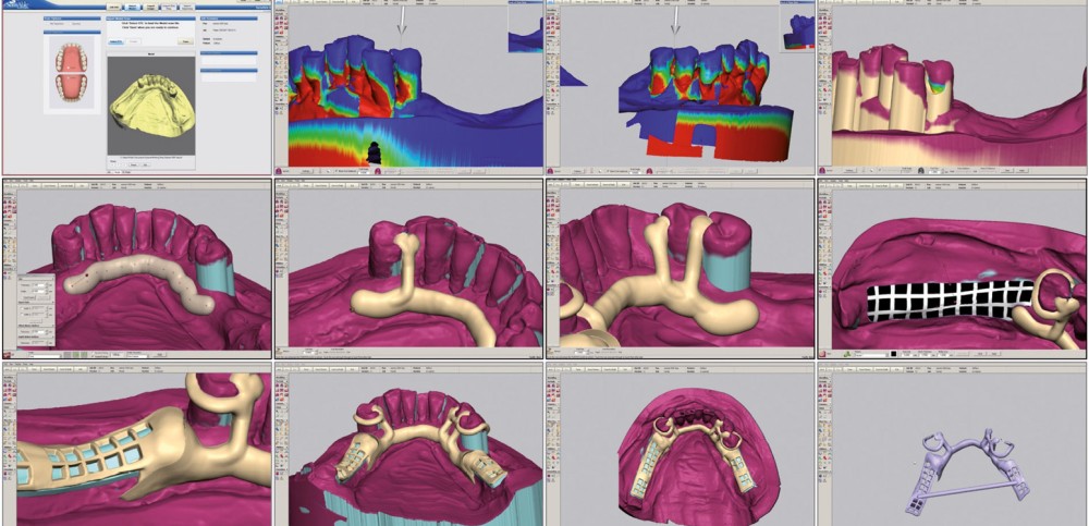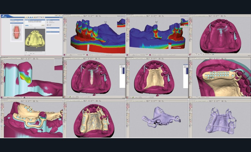 Pour la modélisation, les laboratoires se sont équipés de logiciel de CAO spécifiques à la prothèse amovible. Les armatures de prothèses amovibles partielles (PAP) peuvent désormais être réalisées avec ces procédés (fig. 2 et 3). Par ailleurs, l’évolution des logiciels permet maintenant de faciliter l’élaboration du projet thérapeutique, en réalisant des simulations esthétiques et fonctionnelles des futurs châssis. L’ensemble de ces techniques novatrices vise à faciliter l’intégration de nos réalisations prothétiques, avec des rendus extrêmement réalistes (fig. 4 et 5).