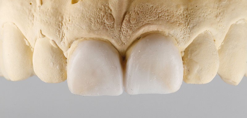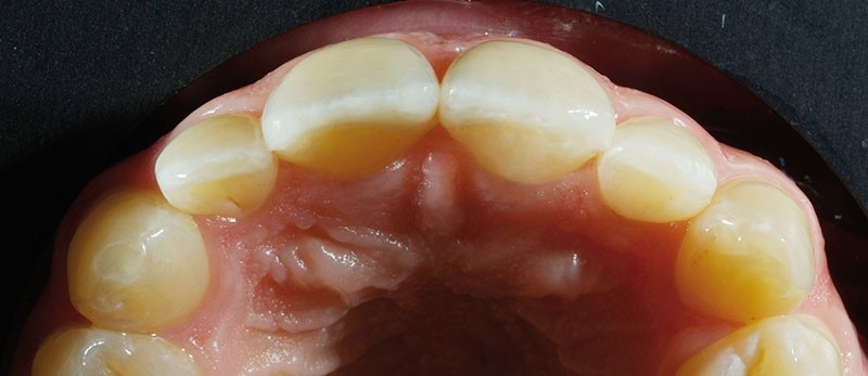 Nous effectuons une empreinte d’étude et nous l’adressons au laboratoire dans le but d’obtenir une cire de diagnostic (wax up) des deux incisives (fig. 2).