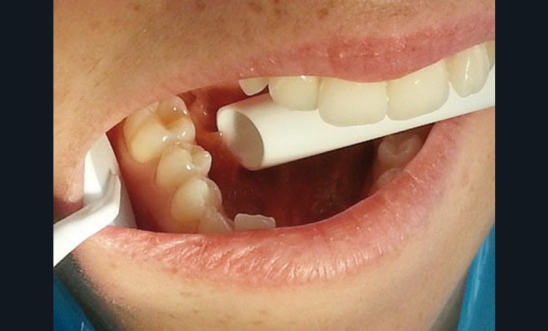 De plus, de nombreuses études relatent que dans certaines conditions, il existe un phénomène de reflux du contenu du tuyau dans la cavité buccale. En effet, lorsque le patient ferme la bouche sur la canule d’aspiration, il crée une dépression dans sa cavité orale, supérieure à la dépression engendrée par la pompe à salive, à l’origine alors du phénomène de reflux (fig. 2).