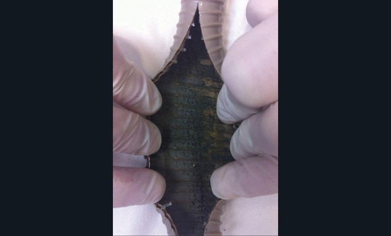 À l’observation, lors du démontage des embouts d’aspiration pour leur entretien, un dépôt noirâtre a été observé à l’intérieur des tuyaux en place (fig. 3).