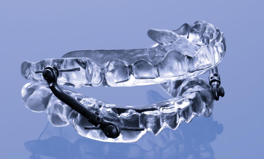 L’OAM permet de maintenir la mâchoire inférieure en position avancée afin de faciliter le passage de l’air et le dégagement des voies aériennes supérieures (VAS) (fig. 1). En effet, lorsque l’on dort, les muscles de la langue et de la gorge se relâchent (atonie musculaire) et obstruent les VAS. Chez les patients qui souffrent d’apnées du sommeil, l’air inspiré passe difficilement (hypopnée) ou plus du tout (apnée). Ainsi, en avançant la mâchoire inférieure, l’OAM entraîne la langue, ce qui permet d’augmenter l’espace pharyngé.