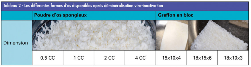 L’os ayant subi le protocole de déminéralisation viro-inactivation peut par la suite se présenter sous différentes formes récapitulées dans le tableau 2.