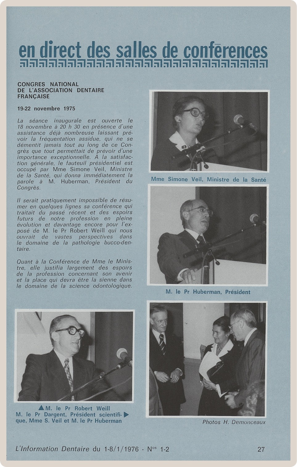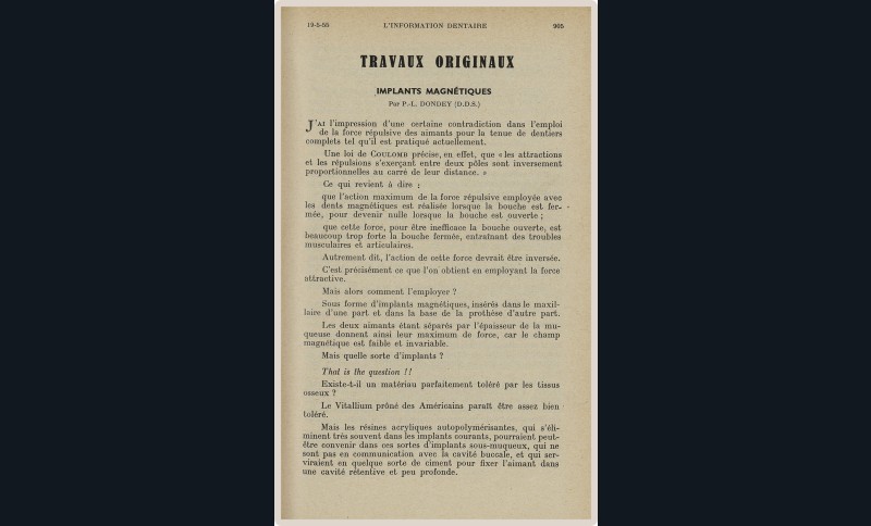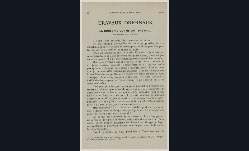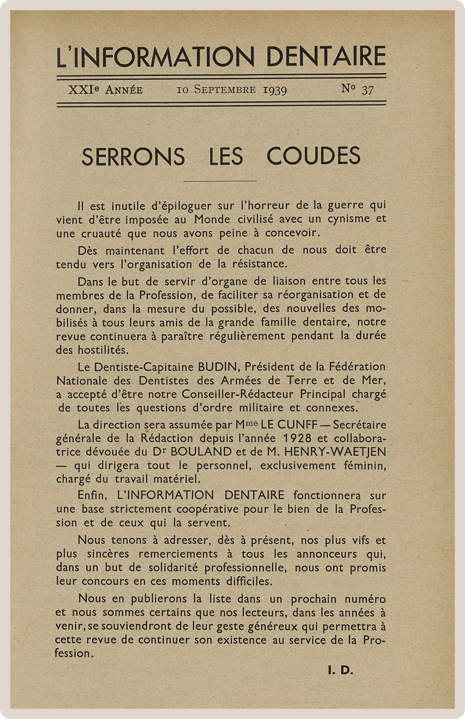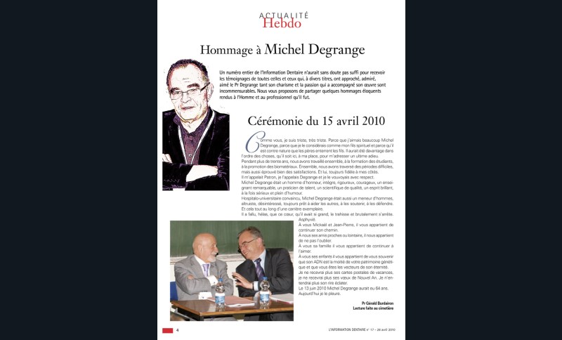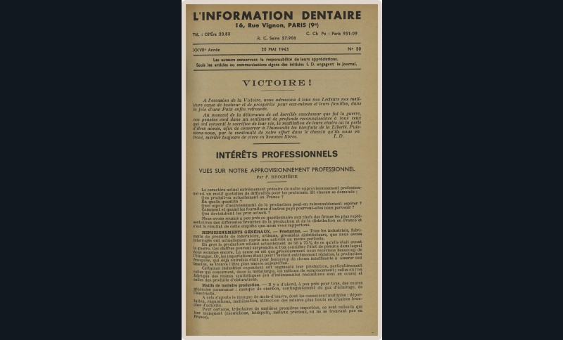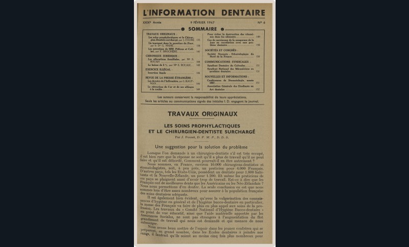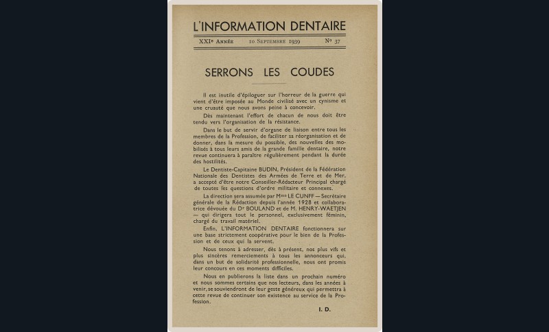 Pendant cette longue vie, L’Information Dentaire a été le témoin de notre profession, de ses évolutions, de ses révolutions. Toujours présente, elle porte en elle le témoignage des moments importants qui ont, parfois insidieusement, transformé notre exercice. Elle nous offre en outre des repères de l’Histoire qui a baigné les vies de nos consœurs et confrères.