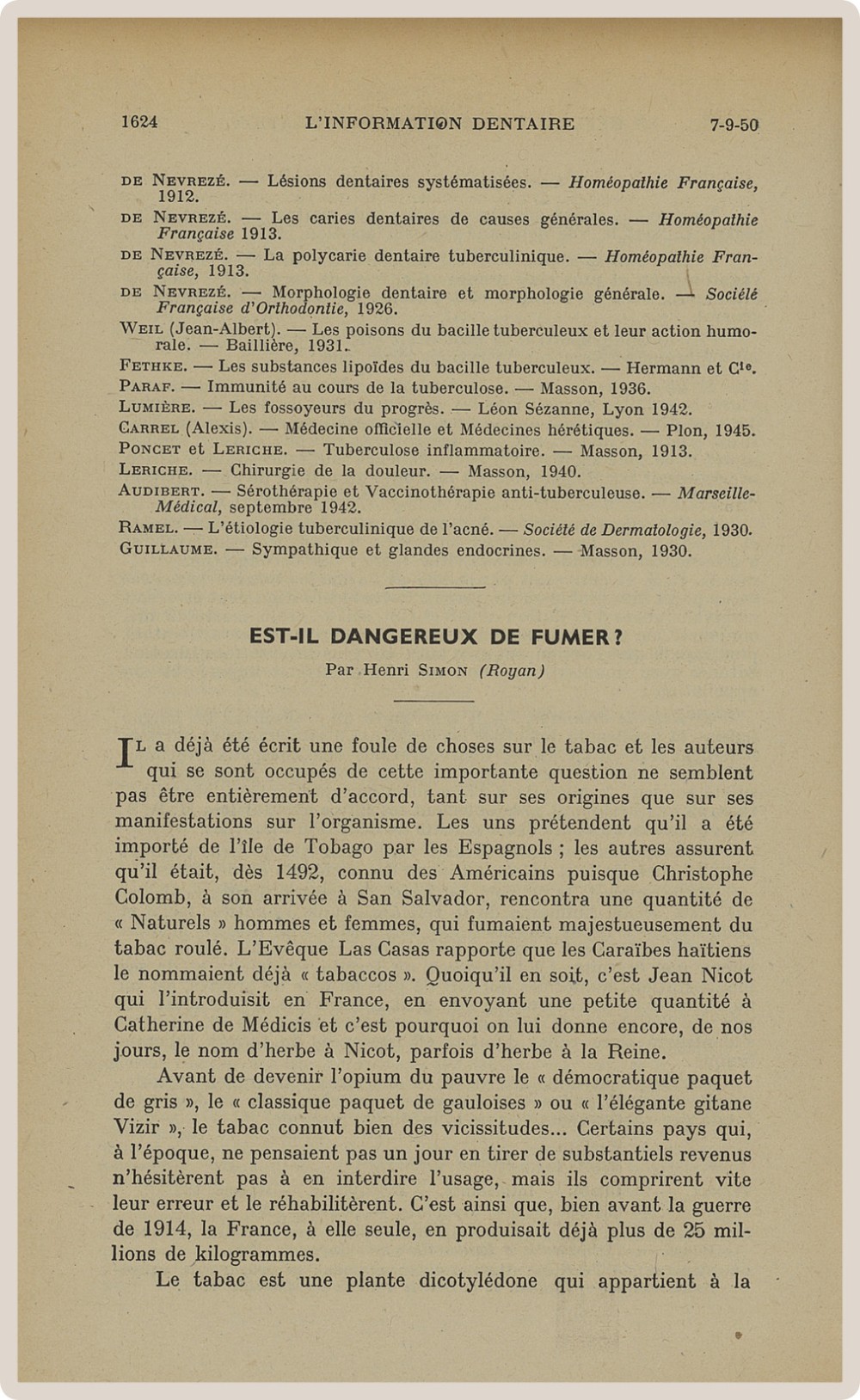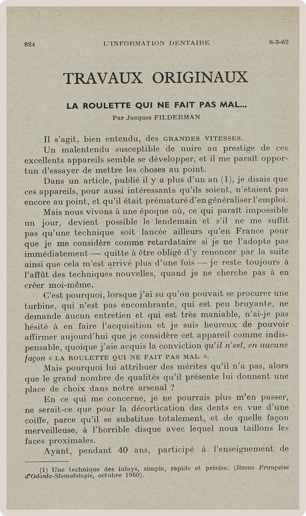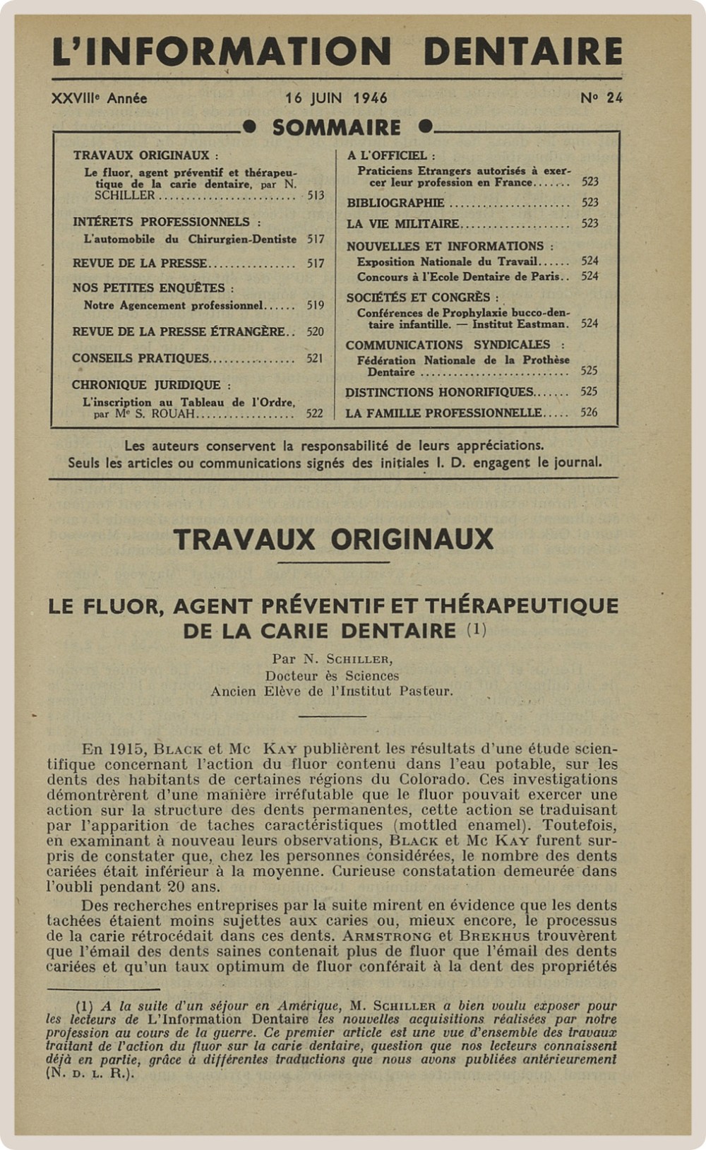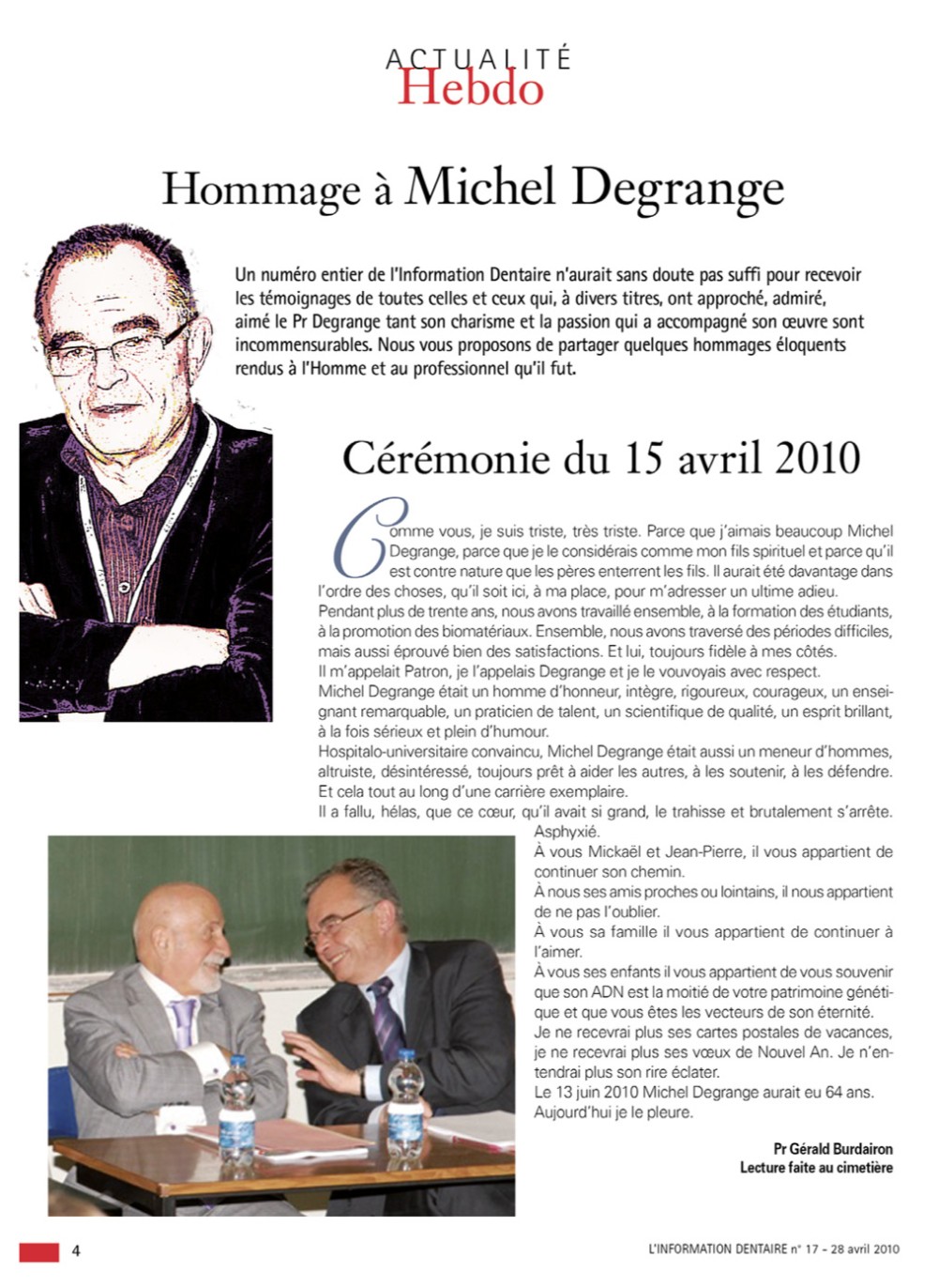 Pendant cette longue vie, L’Information Dentaire a été le témoin de notre profession, de ses évolutions, de ses révolutions. Toujours présente, elle porte en elle le témoignage des moments importants qui ont, parfois insidieusement, transformé notre exercice. Elle nous offre en outre des repères de l’Histoire qui a baigné les vies de nos consœurs et confrères.