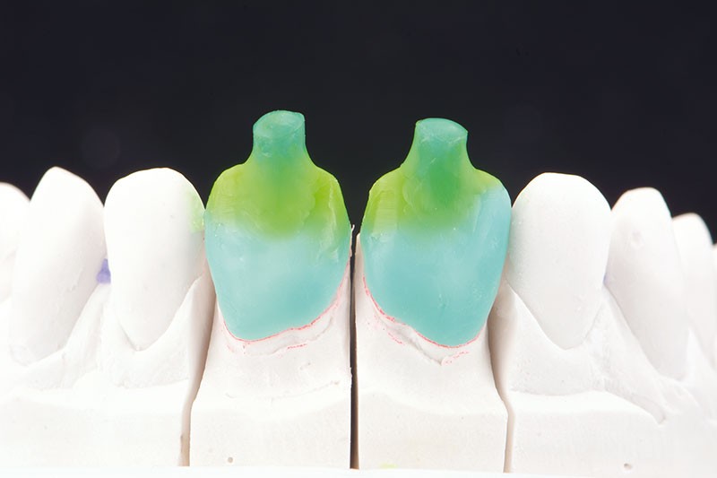 Ici, il a donc été choisi de réaliser une chape de disilicate de lithium émaillée secondairement, comme c’est souvent le cas dans le secteur antérieur pour optimiser la circulation de la lumière et pour améliorer la fluorescence. Le choix du lingotin se fera en fonction de sa translucidité, de sa luminosité…
