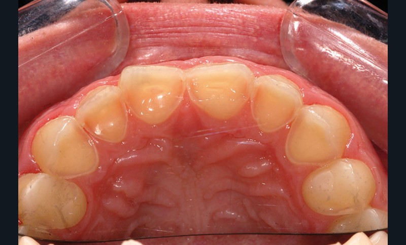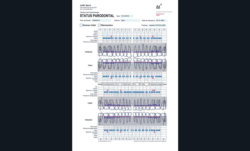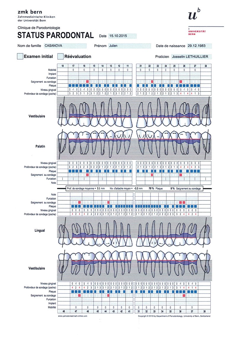 Les examens complémentaires, dont un sondage parodontal, montrent l’absence de maladie parodontale (fig. 7).