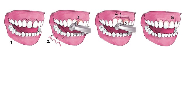 Le parodonte marginal est de type 1 selon la classification de Maynard et Wilson [2]. On note également la présence d’une grande quantité de gencive attachée située apicalement par rapport aux lésions dentaires.