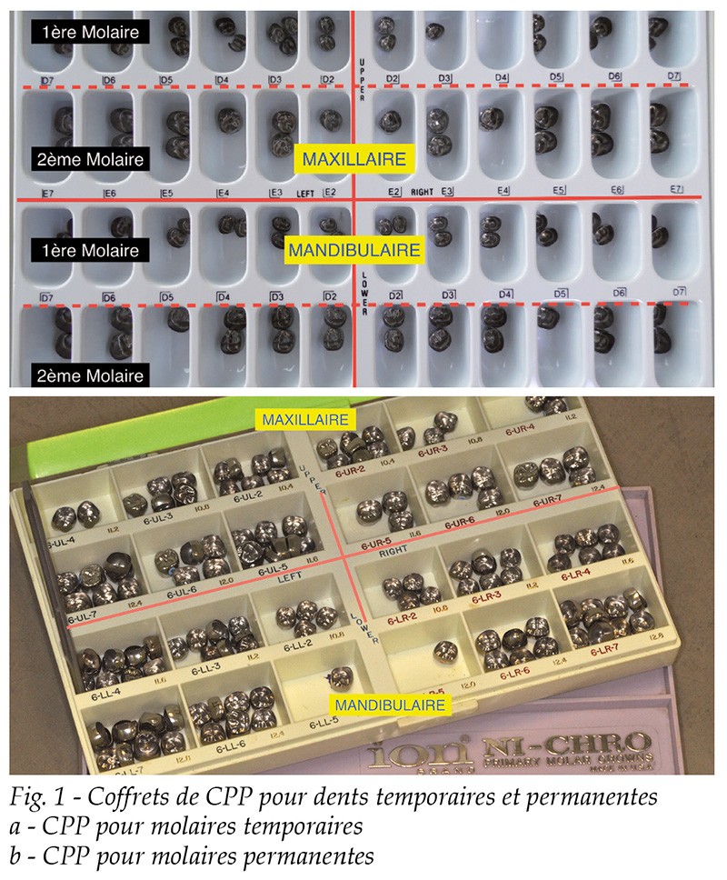 • reconstitution des molaires temporaires ayant bénéficié d’un traitement endodontique (pulpotomie ou pulpectomie).