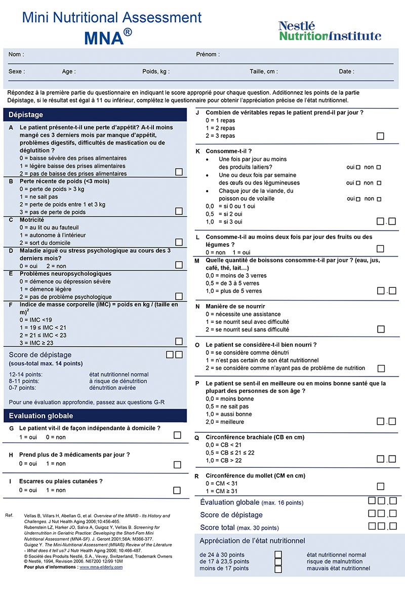La dénutrition protéino-énergétique est fréquente et grave chez les personnes âgées. Les individus qui ont encore des dents (naturelles, bridges ou implanto-portées) présentent un meilleur état nutritionnel que ceux qui portent des prothèses amovibles [1, 2, 10]. Les porteurs de prothèses amovibles bien adaptées ont cependant un meilleur état nutritionnel que les patients édentés. Ce sont surtout les édentés complets qui présentent le plus mauvais état nutritionnel [3, 5, 9]. Aussi, les chirurgiens-dentistes se préoccupent parfois peu de la dénutrition, car leurs interventions ont pour but l’obtention d’une meilleure fonction mascticatoire. Les prothèses transitoires peuvent avoir une adaptation imparfaite et, ainsi, il peut arriver qu’un patient reste durant une longue période avec une fonction masticatoire diminuée ou altérée. Par exemple, le traitement peut être mal toléré ou interrompu pour les raisons suivantes :