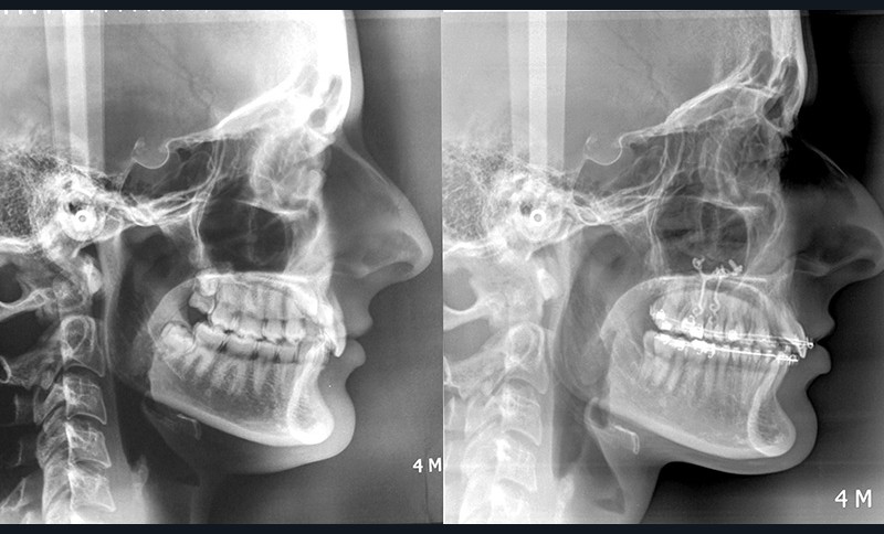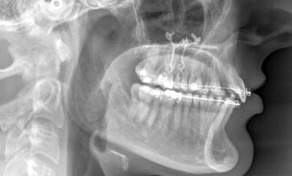 Dans un premier temps, des attaches bidimensionnelles (20/25 antérieures et 22/28 postérieures en Roth) sont collées aux deux arcades. L’alignement-nivellement est initié par des 0.014 Niti. Des plaques d’ancrages osseuses…