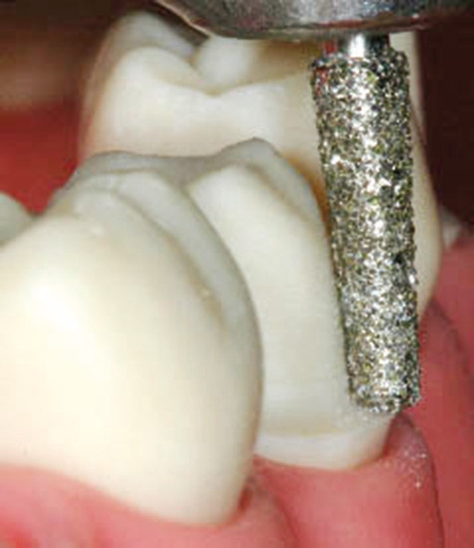 L’objectif de préparation choisi est une largeur de limite de 1 mm (impression visuelle satisfaisante de la largeur de la limite cervicale pour des bords prothétiques céramo-métalliques ou tout-céramique).