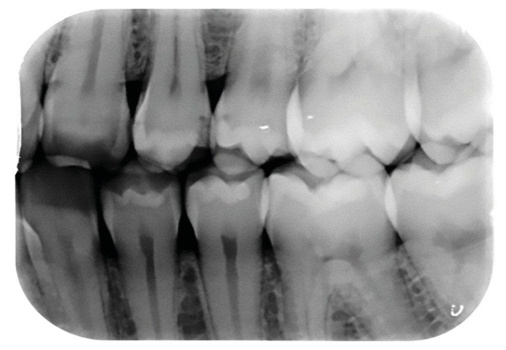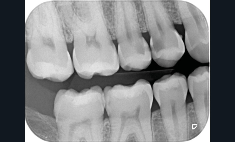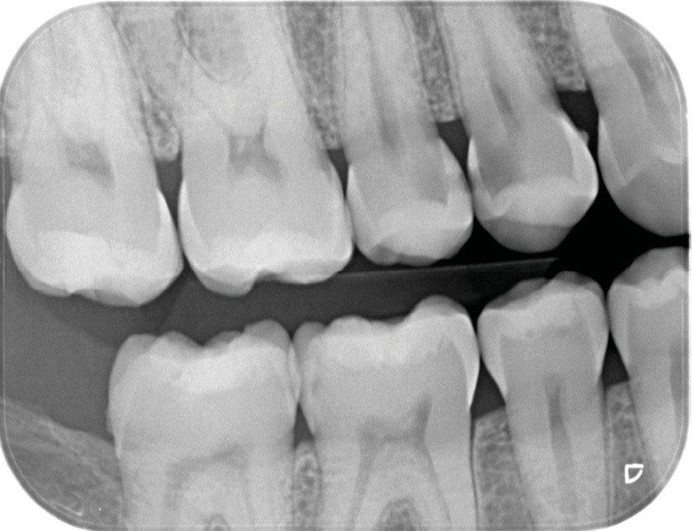 FAUX. Le diagnostic précoce des lésions carieuses se base sur un diagnostic clinique visuel précis à l’aide des classifications visuelles internationales (ICDAS ou ICCMS) et de l’utilisation d’aides optiques (loupes, microscope, caméra avec signal fluorescent ou non) et sur un diagnostic radiographique (à l’aide de deux bitewing, l’un à droite l’autre à gauche) (fig. 1).