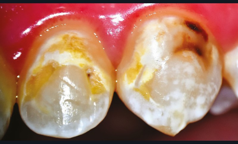 Cette technique est réalisée en une seule séance clinique, et présente l’avantage d’être peu invasive et indolore. Cependant, le problème de l’accessibilité dans les lésions proximales est un facteur qui limite l’utilisation de ces thérapeutiques. Le recours à un élastique orthodontique quelques jours avant la mise en place de la résine est une solution intéressante pour améliorer l’accessibilité et traiter les lésions de déminéralisation en proximal. Aujourd’hui, ces thérapeutiques sont également utilisées dans le traitement esthétique des taches blanches vestibulaires de l’émail, la mise en place du produit étant facilitée dans ces situations cliniques.