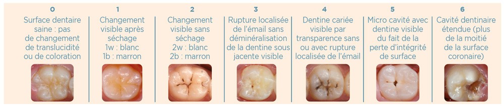 • Traitement non invasif : après avoir réalisé un contrôle de plaque dentaire (révélateur de plaque, apprentissage et motivation à l’hygiène bucco-dentaire), ce traitement est mis en place lorsque la lésion carieuse est active mais non cavitaire (ICDAS 1 et 2). Dans ce cas, le chirurgien-dentiste utilise des thérapeutiques qui permettront de modifier le biofilm buccal du patient (par exemple, les probiotiques, l’arginine), et/ou des produits de reminéralisation (par exemple, Casein Phosphopeptide-Amorphous Calcium Phosphate) et/ou du Silver Diamine Fluoride (SDF).