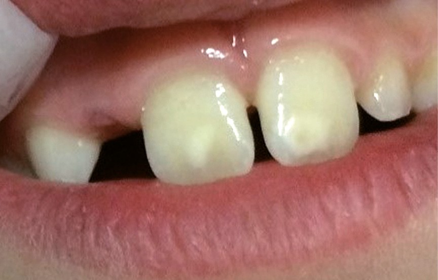 Le diagnostic d’une anomalie dentaire permet une reconnaissance pour l’enfant de sa gêne ou de sa souffrance dans les situations du quotidien. La prise en compte de la douleur par le praticien est la première étape avant l’évaluation. Parmi les anomalies de structure, l’amélogenèse imparfaite (AI) (fig. 1) et l’hypominéralisation molaires-incisives (MIH) (fig. 2) sont les plus douloureuses. La porosité de l’émail des dents affectées est responsable d’une inflammation pulpaire infraclinique à l’origine d’une hypersensibilité provoquée voire d’une douleur chez les jeunes enfants. De plus, cette porosité peut favoriser la rétention du biofilm pathogène pour la dent et le parodonte, et entraîner une lésion carieuse et/ou une gingivite, elles-mêmes douloureuses.