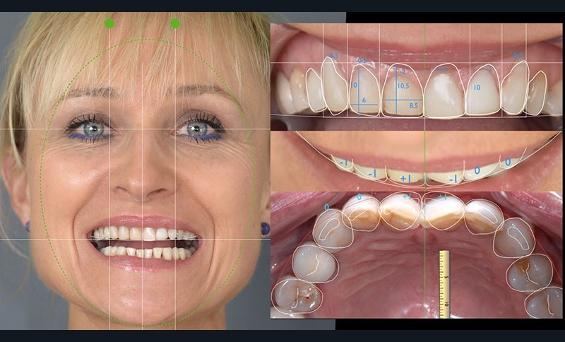 Séance préopératoire de recueil d’informations, analyse de la face et du sourire.