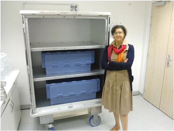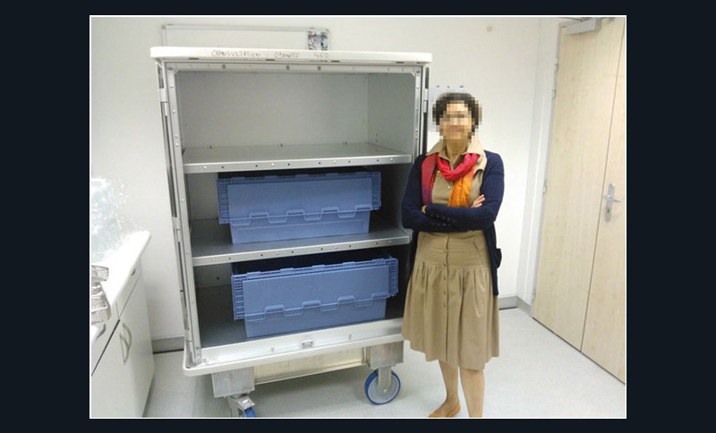 Au niveau hospitalier, la stérilisation est une spécialisation de l’activité visant à la prévention des infections nosocomiales. Cent recommandations pour la surveillance et la prévention des infections nosocomiales ont été édictées par le Ministère de la Santé et nous décrirons ici succinctement les principales d’entre elles. L’organisme chargé du respect des bonnes pratiques de stérilisation s’appelle le CLIN (Comité de Lutte contre les Infections Nosocomiales). Il se réunit périodiquement afin de faire le point sur le respect des règles d’hygiène à travers les signalements qui lui ont été adressés ou par des indicateurs comme, par exemple, la consommation de gel hydro-alcoolique dans chaque service. Le principal paramètre qui différentie l’hôpital du cabinet est le volume d’instruments à traiter. Chaque site possède un service centralisé de stérilisation qui traite les matériels de tous les services. Lorsque le site ne possède pas d’unité de stérilisation, le matériel est prédésinfecté sur place puis expédié dans des containers de grande capacité et sur roulettes vers la stérilisation centrale(fig. 1 et 2).