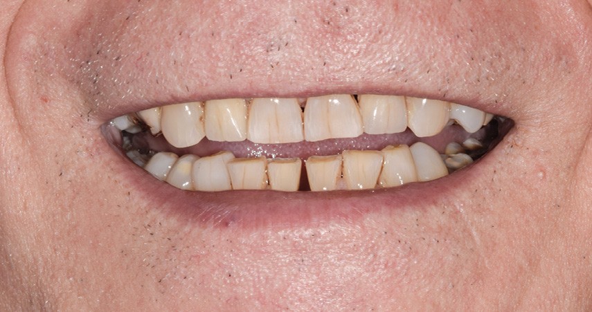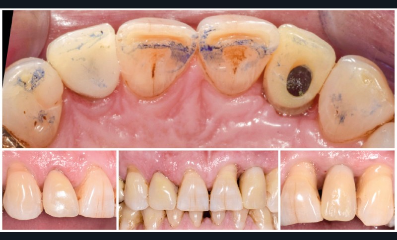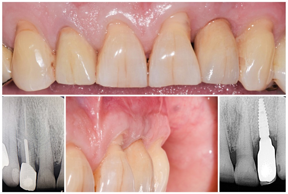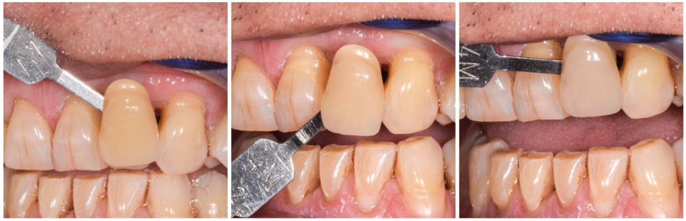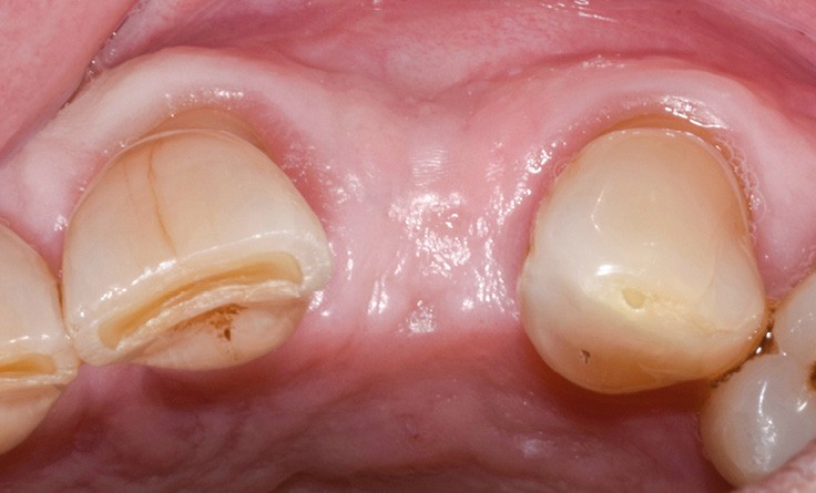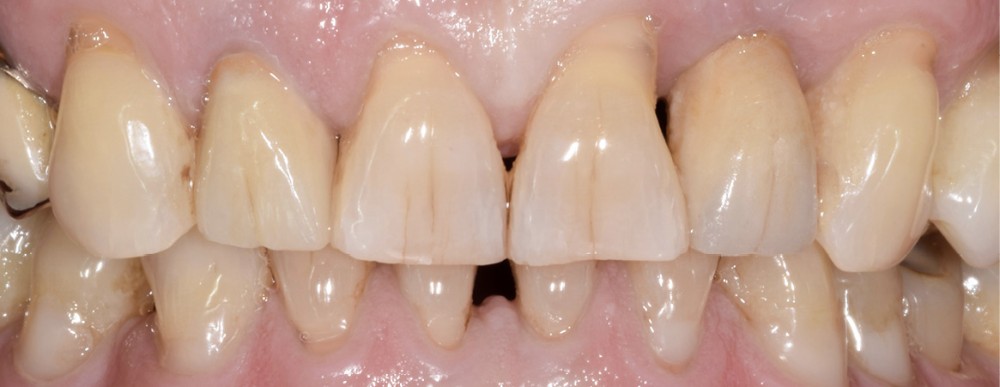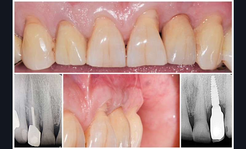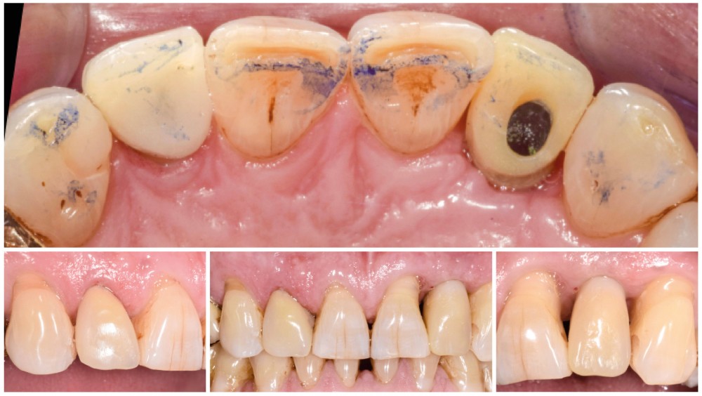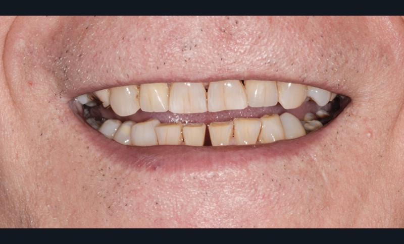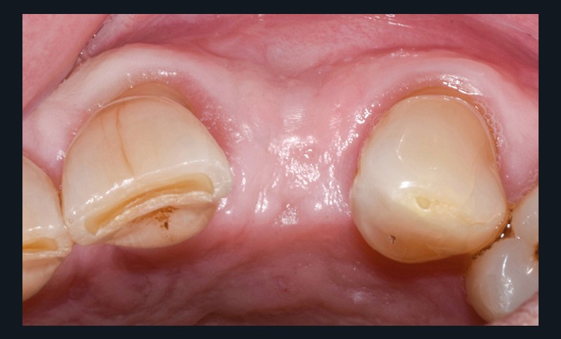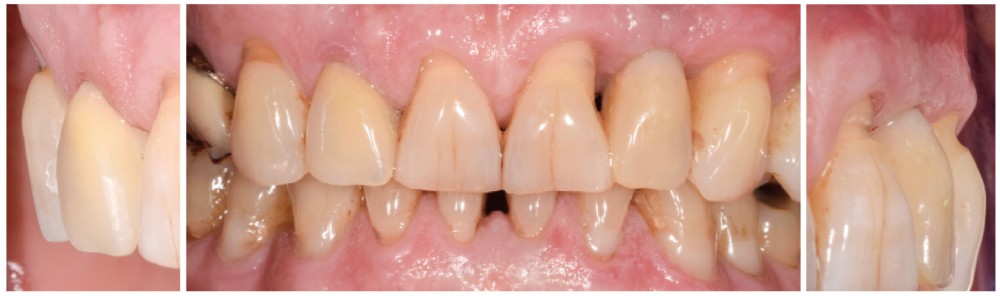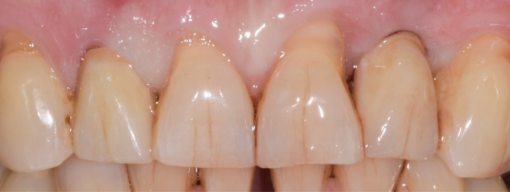 Un patient de 62 ans se présente en consultation afin de réaliser les coiffes prothétiques des dents 12 et 22. La 12 présente une restauration par prothèse transitoire non adaptée. Un implant au niveau de la 22 a été posé par un autre praticien selon une technique chirurgicale en deux temps. Le praticien a adressé le patient pour la réalisation prothétique. L’option de bridge collé cantilever mono ailette n’avait pas été retenue ou proposée selon une technique chirurgicale en deux temps. Le patient souhaite rétablir l’esthétique et la fonction de ces deux dents uniquement.