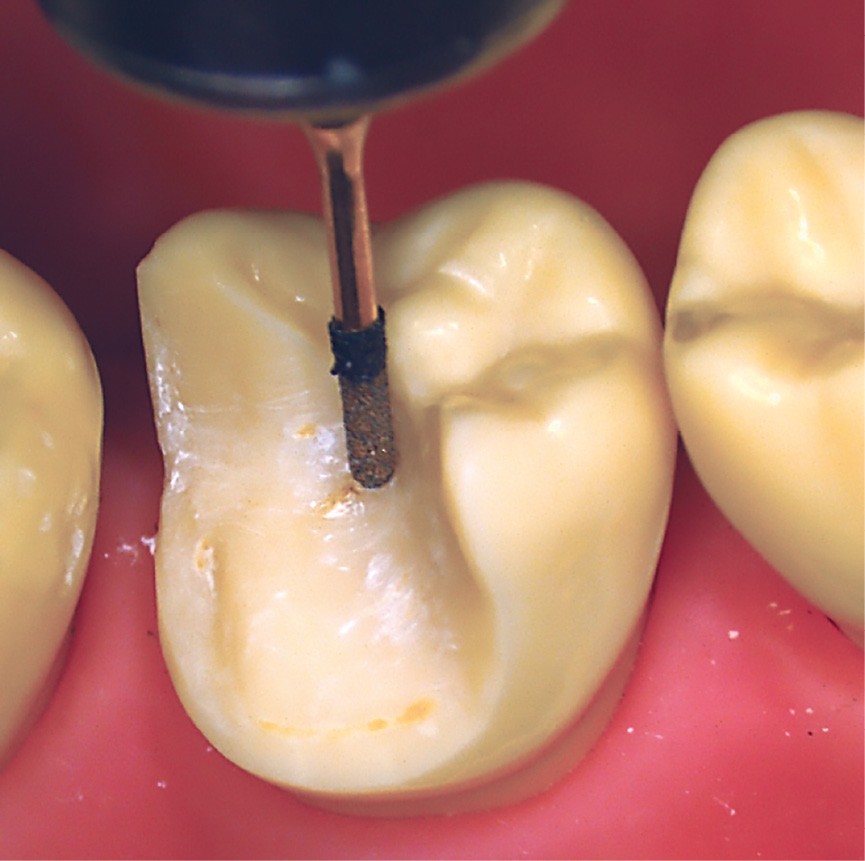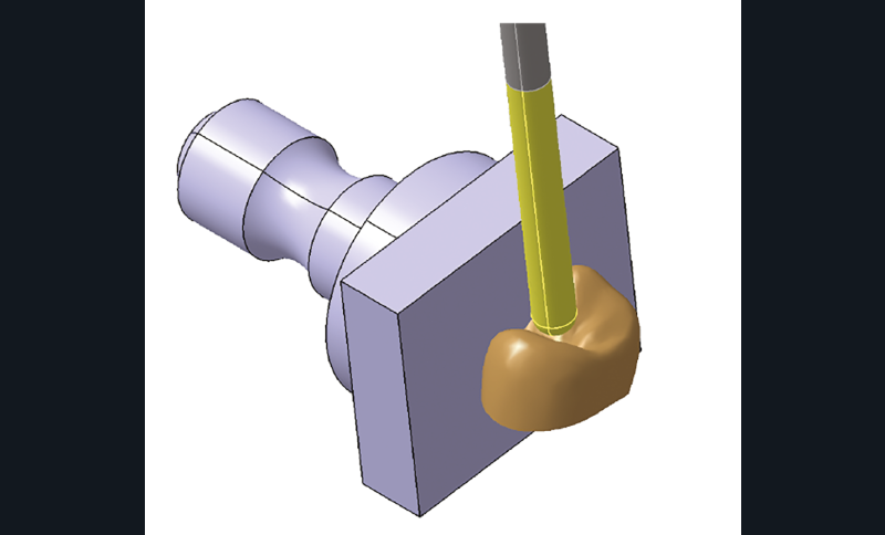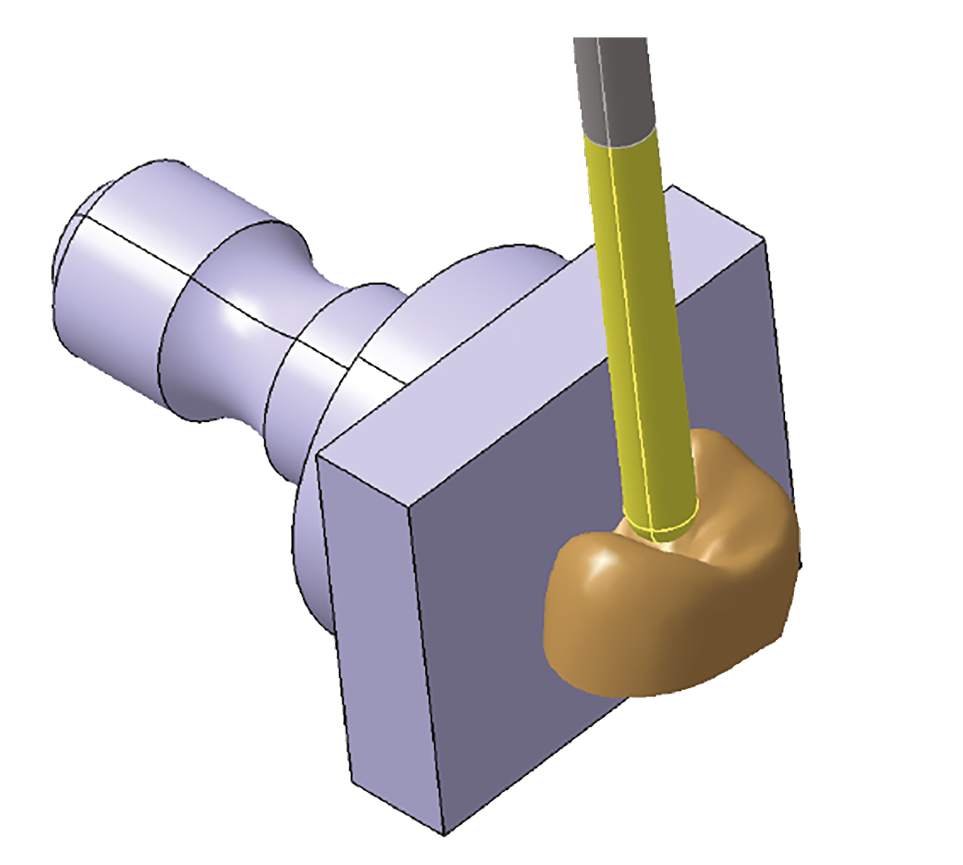 Aujourd’hui, grâce au pilotage des axes des machines-outils par commande numérique, le déplacement s’effectue pratiquement dans n’importe quelle direction de l’espace, produisant ainsi, aussi bien un mouvement d’avance non linéaire en deux dimensions (fig. 1b) qu’en trois dimensions. Ce dernier est très proche de celui réalisé par un humain, comme lors de la préparation d’une dent par un praticien (porteur humain) (fig. 1c).