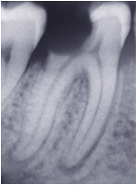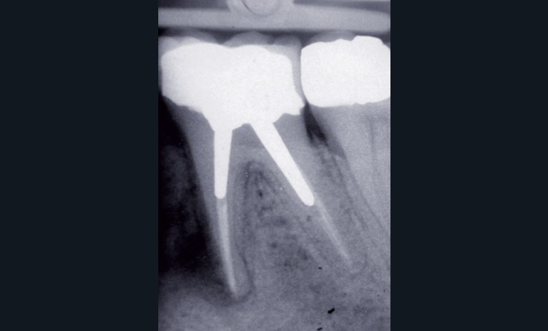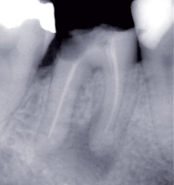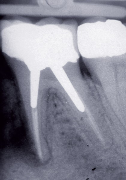 Dans un environnement parodontal sain, la chronologie des traitements conservateurs suite à la pathologie carieuse serait la suivante : le traitement endodontique de première intention, le retraitement endodontique et la chirurgie endodontique, voire l’amputation radiculaire. En cas d’échec, l’alternative implantaire pourra être envisagée (fig. 1).