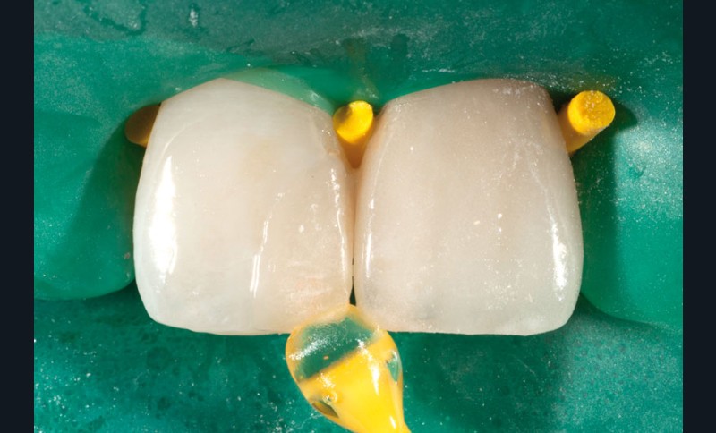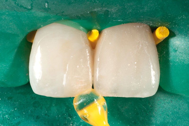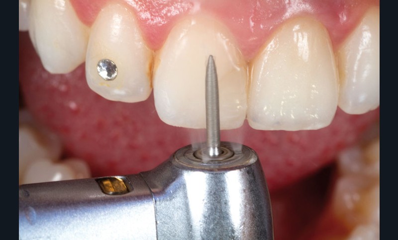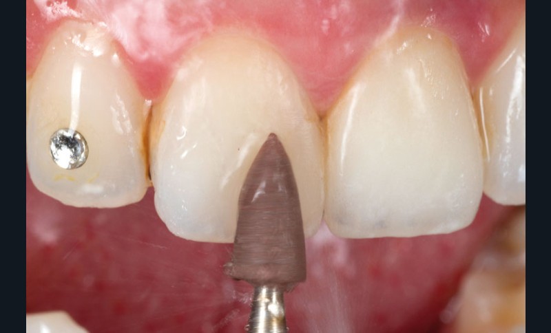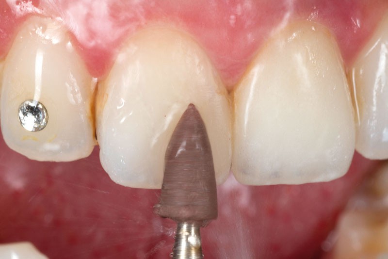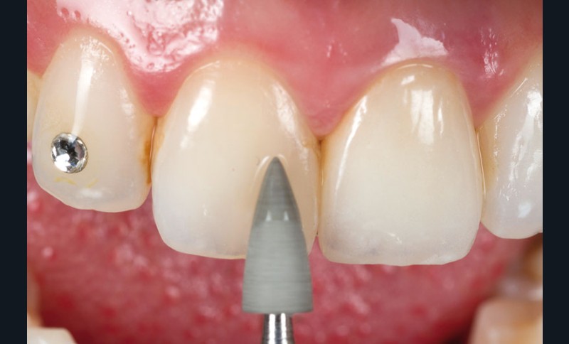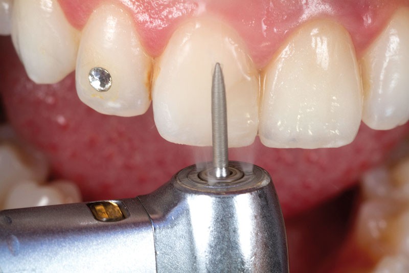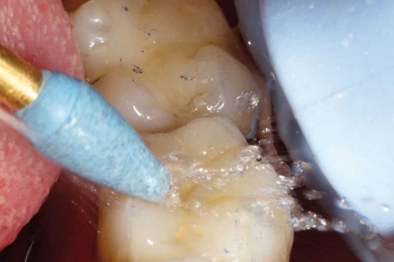 Les retouches et le polissage de la couche stratifiée répondent à des protocoles codifiés faisant intervenir successivement une fraise diamantée à granulométrie fine (bague rouge), puis une série de polissoirs en silicone incrusté de particules de diamant (coffret 4313B, fig. 2a). Le respect de la séquence progressive est primordial, sous peine de ne pas obtenir le résultat optimal.