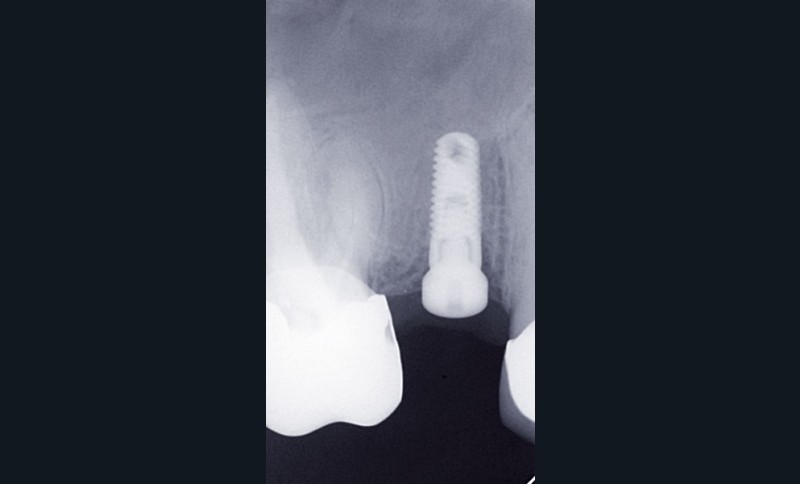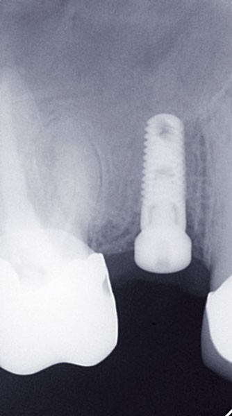Le praticien s’assurera de la bonne intégration de l’implant avant la prise d’empreinte après examen clinique et radiographique (fig. 1).