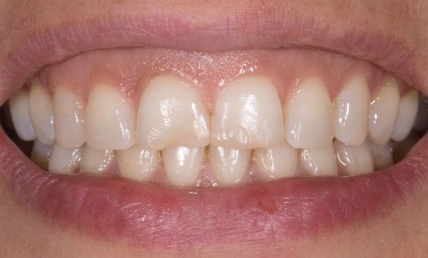 La confection de nouvelles restaurations en résine composite répond à une séquence précise et rigoureuse de réflexion puis d’action. Avant toute intervention clinique, le praticien doit apprendre à observer l’environnement des dents à restaurer : les dents adjacentes, la gencive, les rapports occlusaux. Il doit aussi faire un relevé précis de la composition chromatique des dents associé à l’enregistrement de l’anatomie à reproduire : contour, lignes de transition et états de surface (macro et microgéographie). Cela est possible par l’utilisation d’un protocole photographique composé de trois clichés : le sourire pré opératoire (fig. 1), une vue avec écarteurs et échantillon de teintier (fig. 2) et enfin une vue en lumière polarisée. Une fois ces enregistrements effectués, une cire diagnostique est commandée au laboratoire afin de restituer le volume des dents à restaurer par l’utilisation d’une clé en silicone.