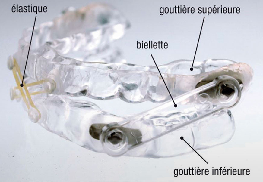 Un dispositif amovible, utilisé tout d’abord par les orthodontistes, a été détourné et évalué avec succès dans le traitement des troubles respiratoires obstructifs du sommeil : l’orthèse d’avancée mandibulaire (OAM).
