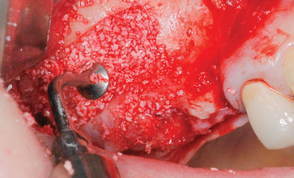 Le sinus lift, tel qu’il est pratiqué aujourd’hui, est une évolution des principes posés par Tatum dans les années 1970 [3]. Il s’agit d’aborder le sinus en réalisant un volet osseux au niveau de la paroi antéro-externe. Cet abord permet d’accéder à la membrane sinusienne qui est décollée progressivement et minutieusement. Cette membrane, repositionnée à distance du plancher, devient alors le toit d’une nouvelle cavité, qui accueille un biomatériau osseux. Une fois le biomatériau injecté et tassé, le volet osseux d’accès est repositionné, et le lambeau est suturé. Au cours des 6 mois de cicatrisation, le biomatériau est progressivement colonisé par les ostéoblastes…
