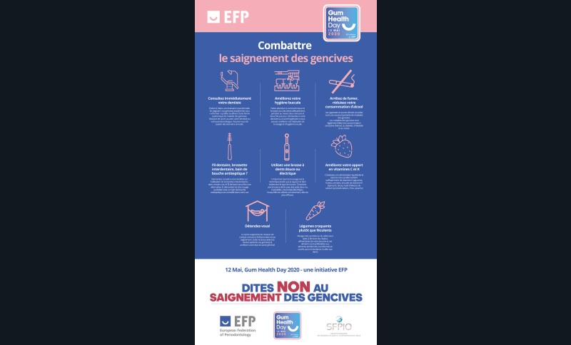 Cette journée de la santé gingivale a lieu tous les ans. Elle est à la fois très porteuse et très intéressante en termes de communication. Il est ainsi possible de télécharger, sur le site de l’EFP, des vidéos, une fiche en français sur le saignement des gencives, qui permettra de communiquer sur les maladies parodontales, sur la santé générale, mais aussi sur la façon de combattre cette symptomatologie et ses conséquences. Tous ces supports pédagogiques nous permettent d’avoir un lien plus étroit avec nos patients, et de pouvoir mettre des mots faciles et accessibles sur ce qu’ils peuvent vivre au quotidien.