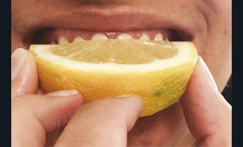 Lorsque l’on consulte les sites internet, il n’existe pas de consensus quant à la technique de son utilisation. Il est généralement conseillé de frotter du citron directement sur les dents (fig. 4), ou de tremper sa brosse à dents dans du jus de citron pur et d’effectuer son brossage. Certains « tutoriels » préconisent d’utiliser ce jus ou de l’eau citronnée comme bains de bouche ! Toutes ces stratégies pour « blanchir » les dents font appel à l’acide citrique contenu dans le citron. Cet acide est l’un des composants les plus présents dans les sodas et autres boissons acides. Si les consommateurs connaissent l’effet néfaste de ces boissons sur leurs dents, ils ne font malheureusement pas le rapprochement avec le citron, un fruit, forcément bon pour la santé. Malgré un grand nombre d’études démontrant les effets nocifs érosifs du citron sur les dents définitives comme sur les dents temporaires, ces pratiques continuent à être couramment utilisées [11].
