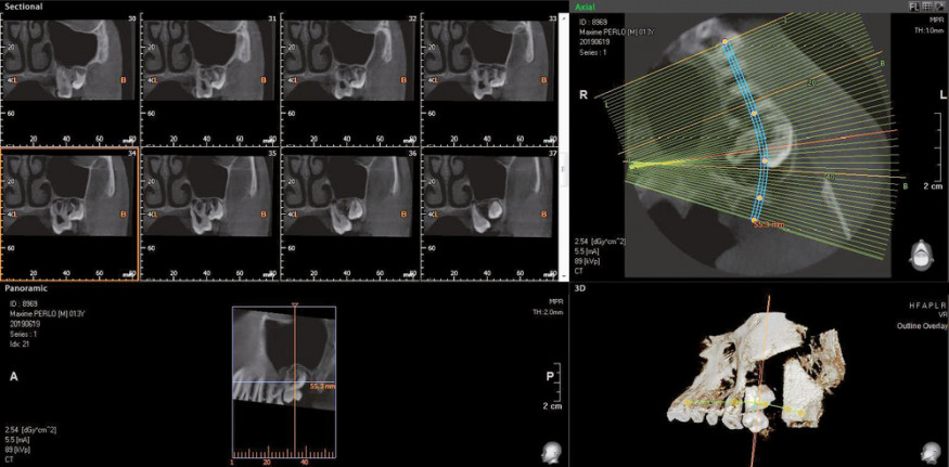 Cependant, il est parfois nécessaire d’intervenir plus tôt. C’est notamment le cas lorsque la dent de sagesse représente un obstacle à l’éruption de la deuxième molaire (fig. 1 et 2). Le cas échéant, un dégagement chirurgical avec collage d’une attache sur la deuxième molaire est souvent nécessaire, suivi d’une traction orthodontique.