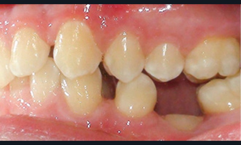 L’infraclusion de la molaire temporaire, et dans son cas extrême sa réinclusion, est le résultat d’une ankylose de la dent. Cette dent ne pourra plus suivre la croissance de l’os maxillaire ou mandibulaire et ainsi le plan d’occlusion. La molaire temporaire ne présentant pas de germe définitif sous-jacent, elle s’ankylose fréquemment à un stade plus ou moins avancé de l’individu et de la croissance des maxillaires.