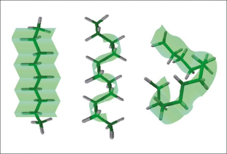 La conformation d’une macromolécule est l’arrangement spatial de ses unités répétitives. En solution ou à l’état liquide visqueux, celle-ci dépend, entre autres, de la possibilité de rotations autour des liaisons simples présentes dans la chaîne macromoléculaire, de la présence de groupements latéraux, de ramifications ou de points de réticulation, des interactions secondaires qui peuvent s’établir entre les unités monomères [2]. Il y a donc une infinité de conformations possibles avec cependant une probabilité variable. Lors de la solidification, les macromolécules présentant une régularité des enchaînements et des configurations peuvent adopter une…