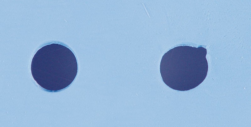 L’objectif est d’obtenir une coupe franche, dessinant un trou parfaitement rond et sans ébarbure. Un pointeau acéré, une gorge de réception parfaitement ronde, une action de perçage franche combinée à une traction de la feuille de digue dans le sens opposé à celui du pointeau, doivent permettre d’obtenir un trou parfaitement rond (fig. 1).