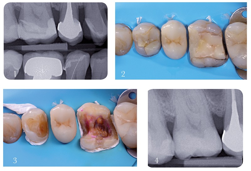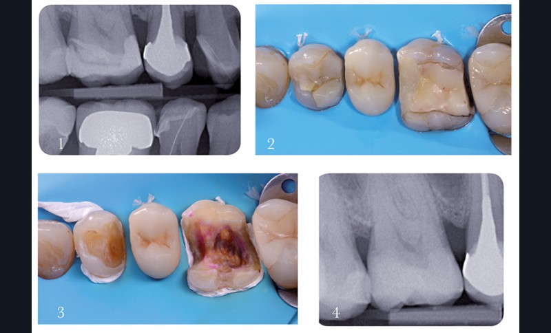 4. La radiographie post-traitement confirme l’efficacité de l’excavation carieuse et l’ajustage satisfaisant de l’onlay en céramique.