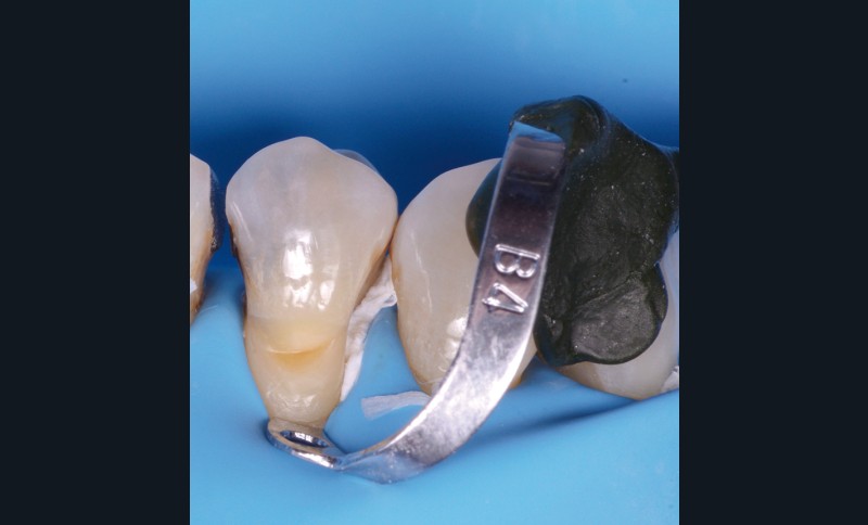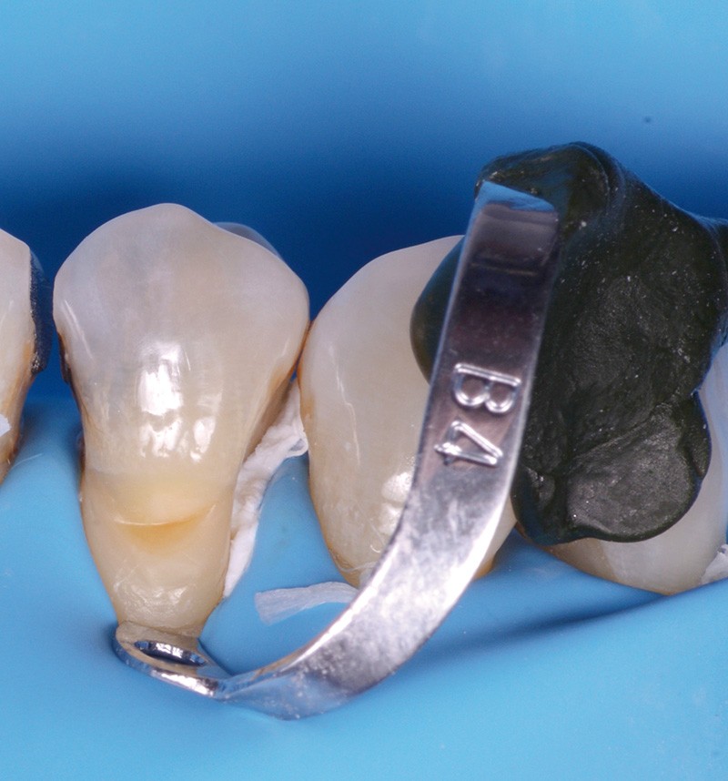 Le recours à un crampon additionnel est souvent, et malheureusement, nécessaire afin de la repousser au-delà de la marge cavitaire cervicale (fig. 1a). Or, travailler sur une dent porteuse de crampon complique l’acte opératoire. De plus, sur des dents au collet étroit (prémolaires, incisives), les mors de ce crampon additionnel doivent être très rapprochés l’un de l’autre pour assurer un grip suffisant, à même de s’opposer la tension du latex. Mais plus les mors sont proches, plus le crampon devient instable, et est susceptible de rotation sur lui-même au moindre contact exercé par l’opérateur en cours de traitement.